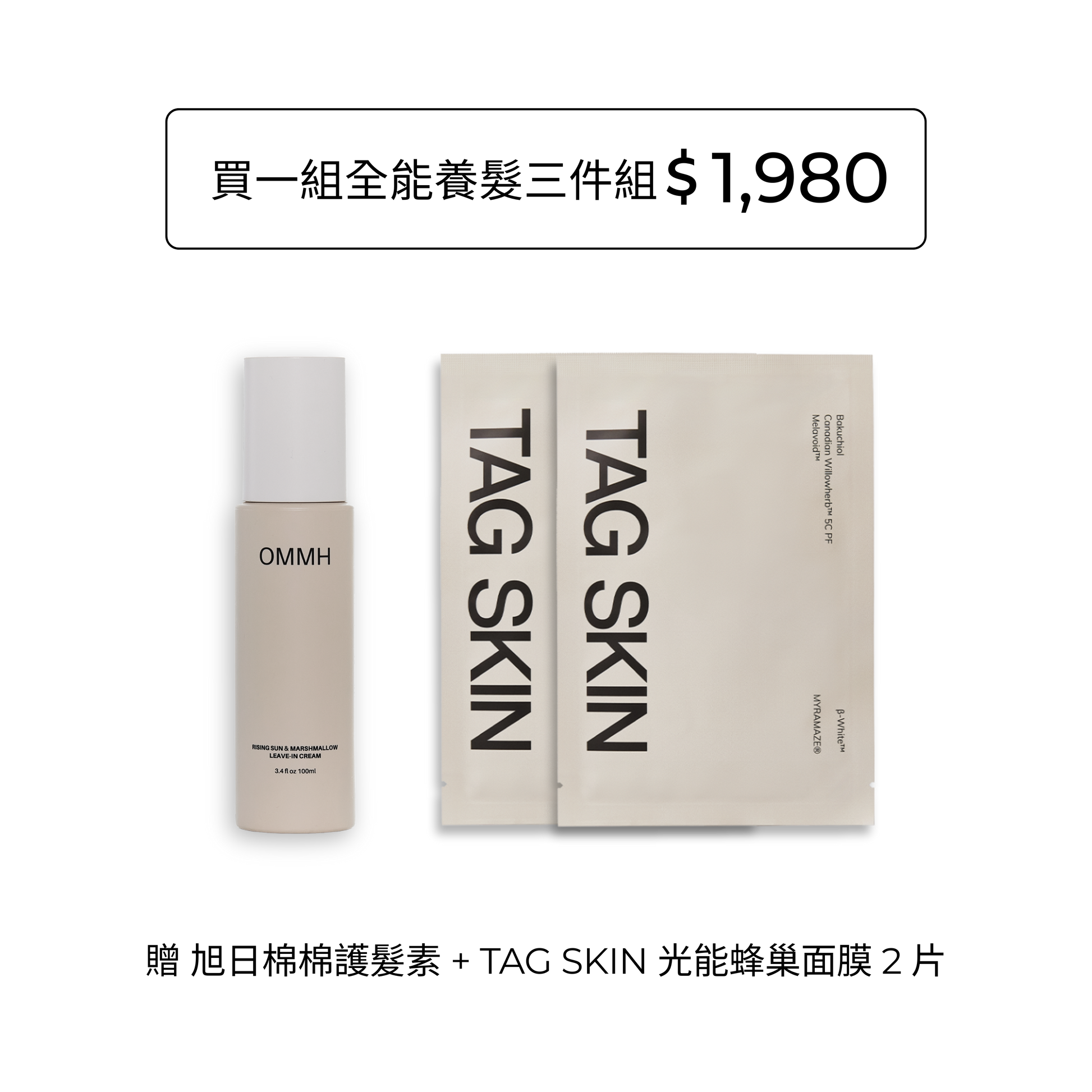 買一組「全能養髮三件組」贈「旭日棉棉護髮素+光能蜂巢面膜2片」